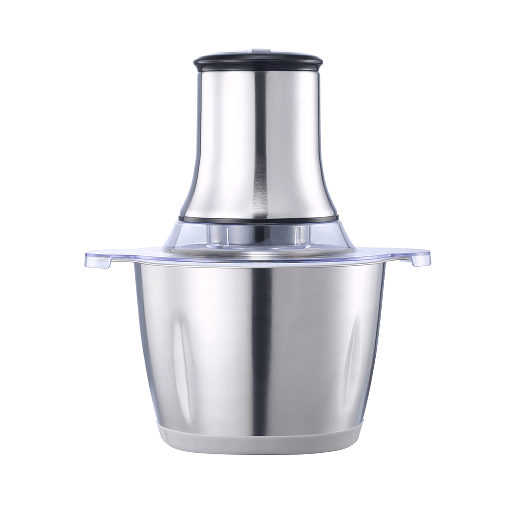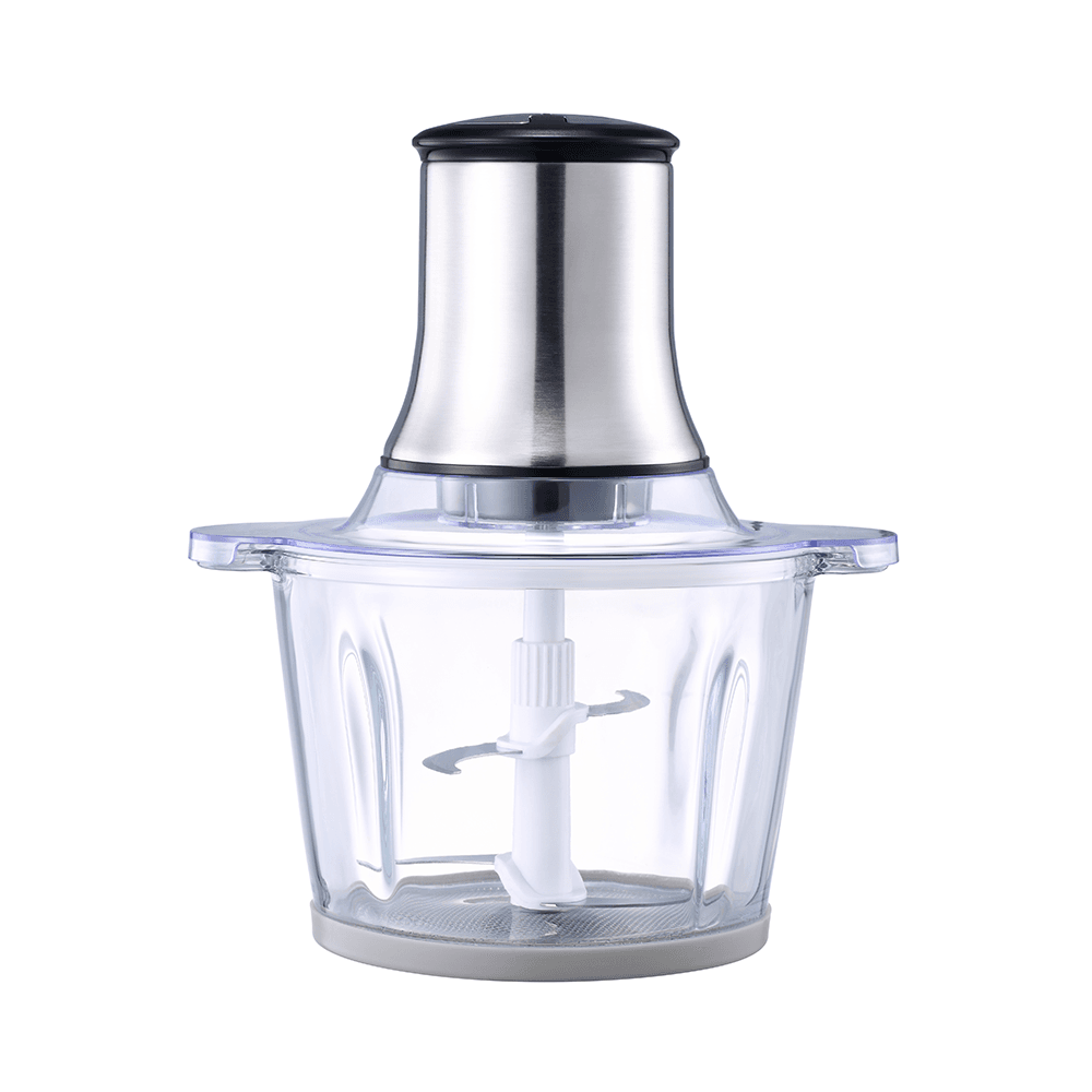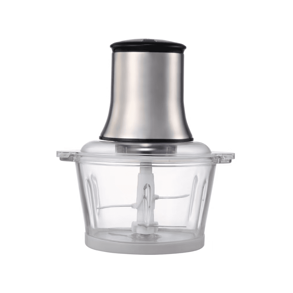 Home Meat Grinder / Food Processor | Model QYC-02 — 500W household chopper designed to turn meat, vegetables, and other foods into smooth paste or coarse cuts. Split-body design makes cleaning faster, with simple top dual-button control for power and time.